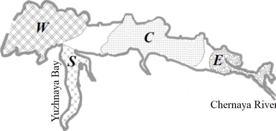 Sevastopol Bay is a water body with complex geographical and hydrological-hydrochemical characteristics. This implies the presence of fresh water sources and zones of their mixing with sea waters, as well as heterogeneity of the anthropogenic load. Therefore, the water area should be zoned and the self-purification capacity (AC of the ecosystem) should be calculated for each zoned area.