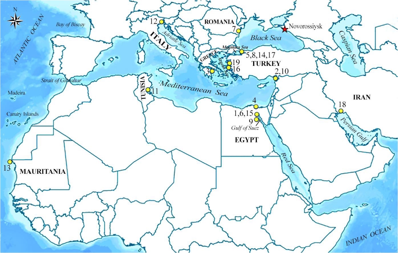 The Black Sea is a part of the Mediterranean Basin, and it has been intensively exchanging waters with the Mediterranean Sea over the past 8–10 thousand years. Therefore, the taxonomic compositions of the marine flora and fauna of these two water bodies have significant similarities [4]. The process of mediterranization of the Black Sea has accelerated significantly over the past half century. The mediterranization of fauna means the acquisition of a Mediterranean appearance by the fauna of the Black Sea and the Sea of Azov as a result of constant penetration of the Mediterranean animal species into these seas. In the biogeographical context, the term was introduced by I. I. Puzanov in 1960 13). Over the period from 1960 to 2010, more than 100 new records of plants and animals of the Mediterranean origin were reported in the northern and western Black Sea. Forty-three species had successfully adapted to new conditions [5].