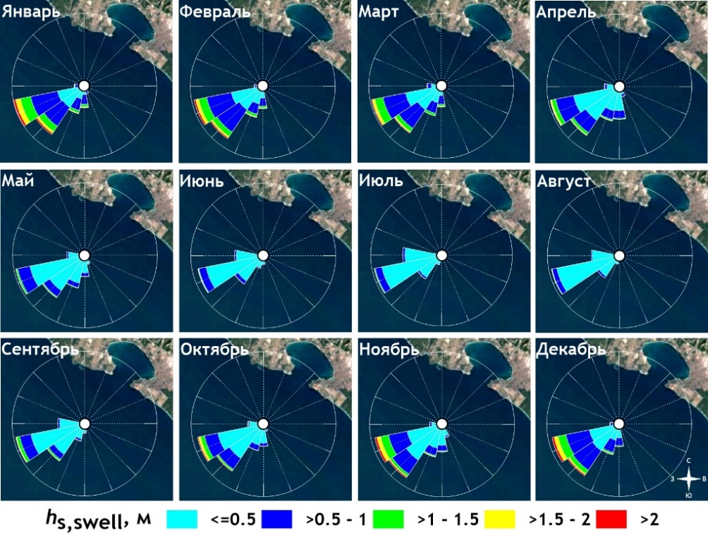 Fig. 3. Monthly swell wave roses near Gelendzhik