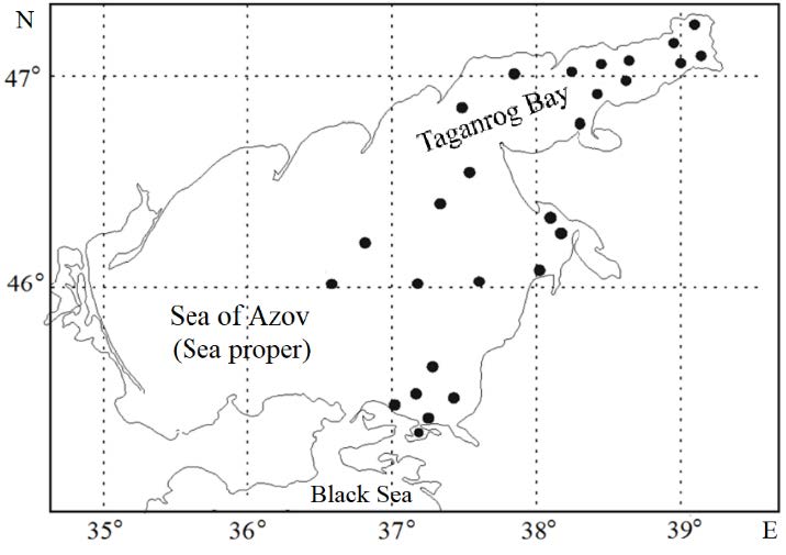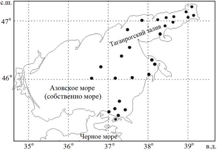 Two areas were identified for work in the Sea of Azov: Taganrog Bay and the open Sea of Azov (the sea itself), which is associated with their morphometric and hydrological features (Table).
