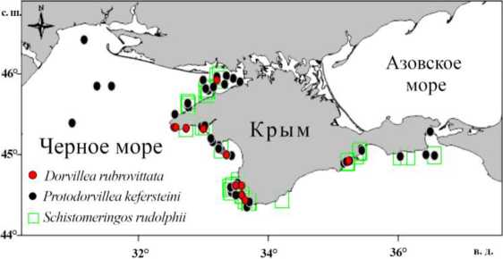 In our samples, D. rubrovittata (Fig. 2, a) was found in open sea areas only near the western shores of Crimea and in Karkinit Bay at a depth of 14–30 m on shell substrates. Its density was 4–16 ind.·m−2 (Fig. 1).