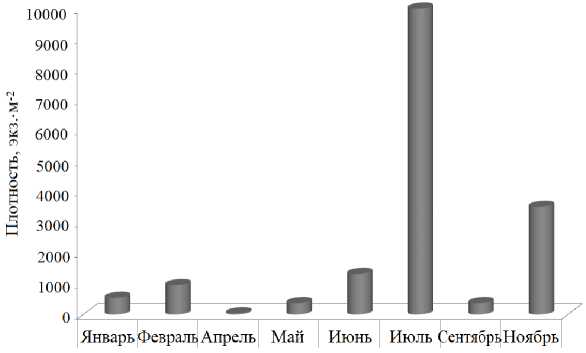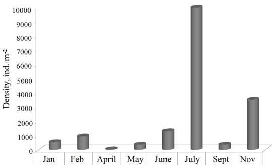 Fig. 4. Seasonal dynamics of P. kefersteini density in Kruglaya Bay(2005)