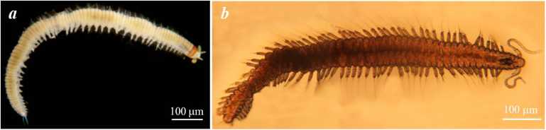 Fig. 2. Dorvillea rubrovittata (a); Protodorvillea kefersteini (b)