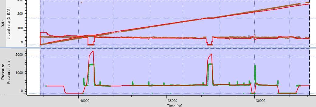 Рис. 2. Обработка данных по истории добычи в модуле Topaze на примере скв. 66 Шершневского месторождения