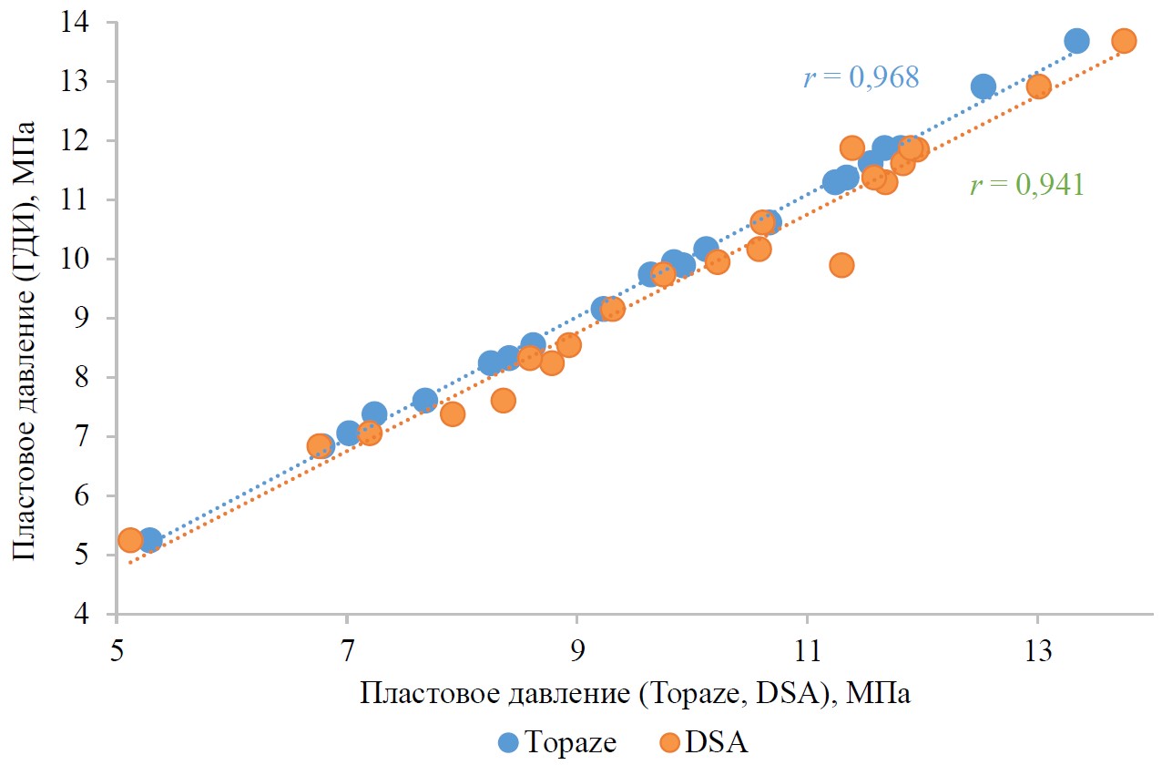 Представляет интерес сравнительный анализ достоверности графического мониторинга энергетического состояния залежей нефти при использовании в качестве исходных данных фактических определений пластовых давлений, а также результатов, полученных в программных продуктах Topaze (анализ добычи) и DSA (машинное обучение), чему посвящена настоящая работа.
