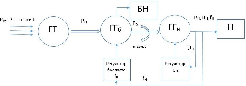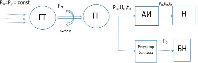 Рис. 5. Структурная схема микро-ГЭС автобалластного типа с инвертором
