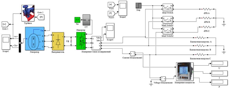 Рис. 6. Имитационная модель системы электроснабжения с инверторной микро-ГЭС