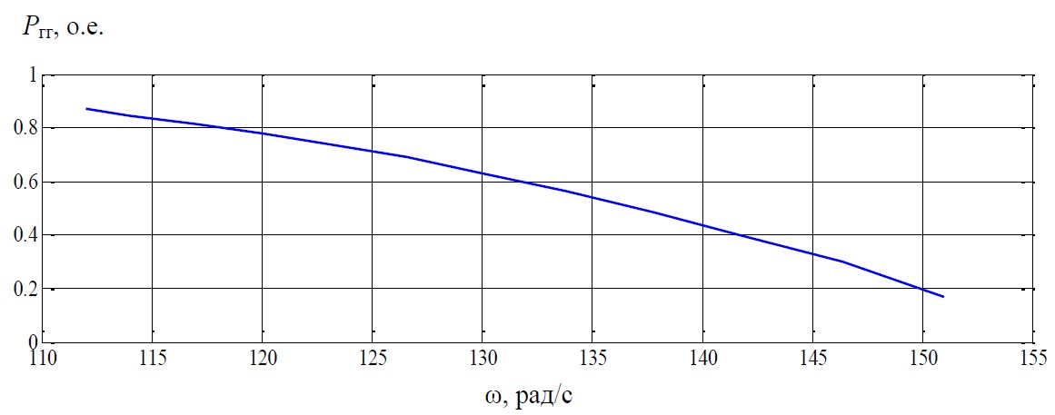 Номинальная активная мощность магнитоэлектрического синхронного генератора принималось равной 30 кВт, полная 37,5 кВт. Активная мощность балласта каждой фазы в процессе моделирования изменялась от 1 до 12 кВт, при этом шаг приращения мощности балласта dPб выбран равным 10 % от номинальной активной мощности генератора Pнг.