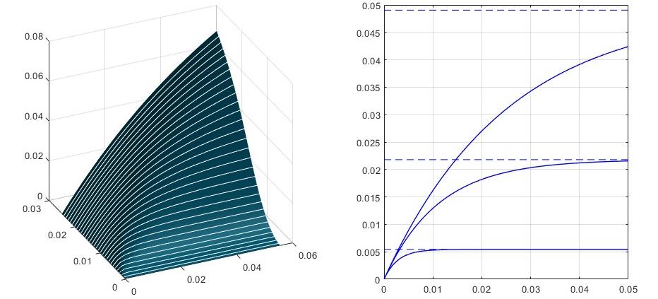 На качественных графиках рис. 4, 5 показаны изломы производных фазовых кривых, которые говорят о том, что изменение состава эмульсии происходит при изменении давления и энтропии. Энтропия системы должна увеличиваться, и тогда происходит потребление теплоты. Полученное авторами выражение (27) позволяет связать количественно радиус образовавшихся глобул с избыточным давлением и поверхностным натяжением.