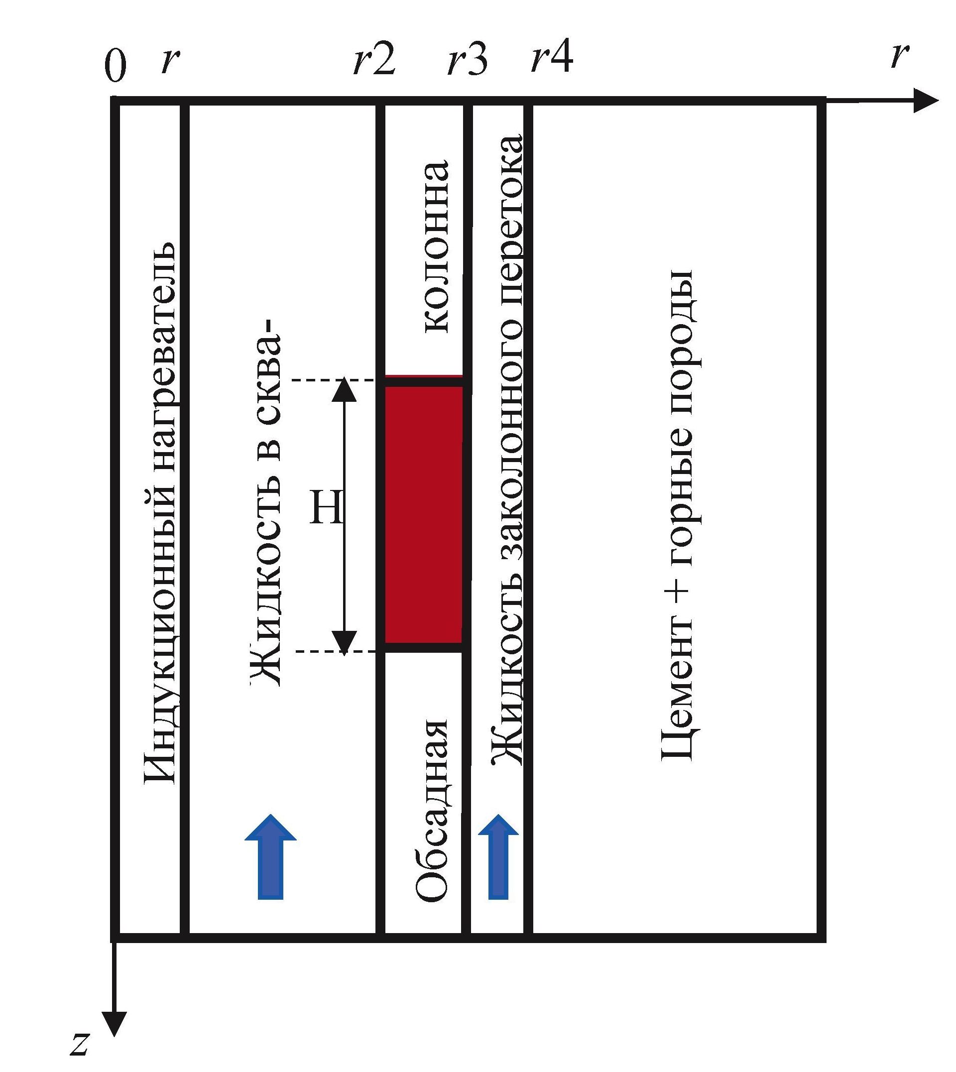 Цель: выявление качественных закономерностей и получение количественных оценок влияния потока жидкости в пространстве за обсадной колонной (заколонном пространстве) на температурное поле в обсадной колонне в процессе ее индукционного нагрева.