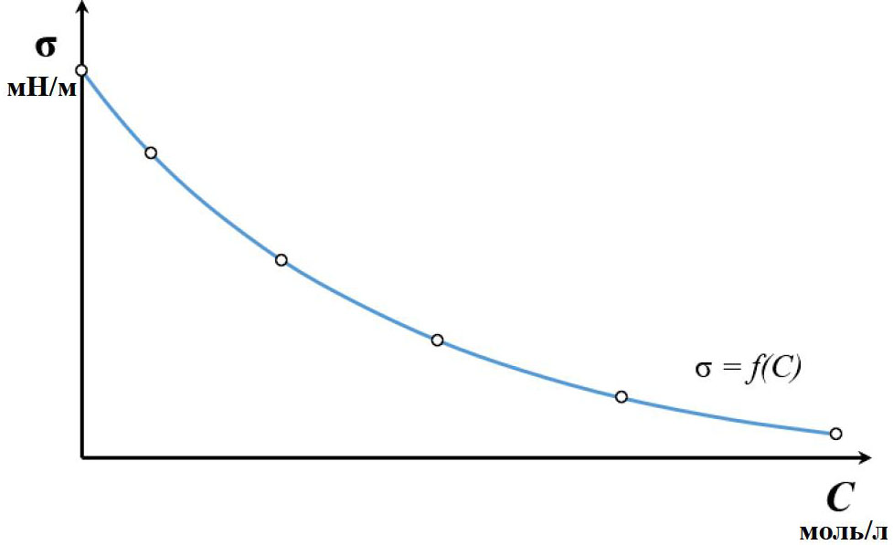 Рис. 1. Изотерма поверхностного натяжения