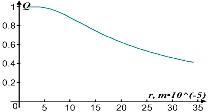 Радиус, которому соответствует максимальная доля частиц эксперимента, определяем по формуле (47), он равен .