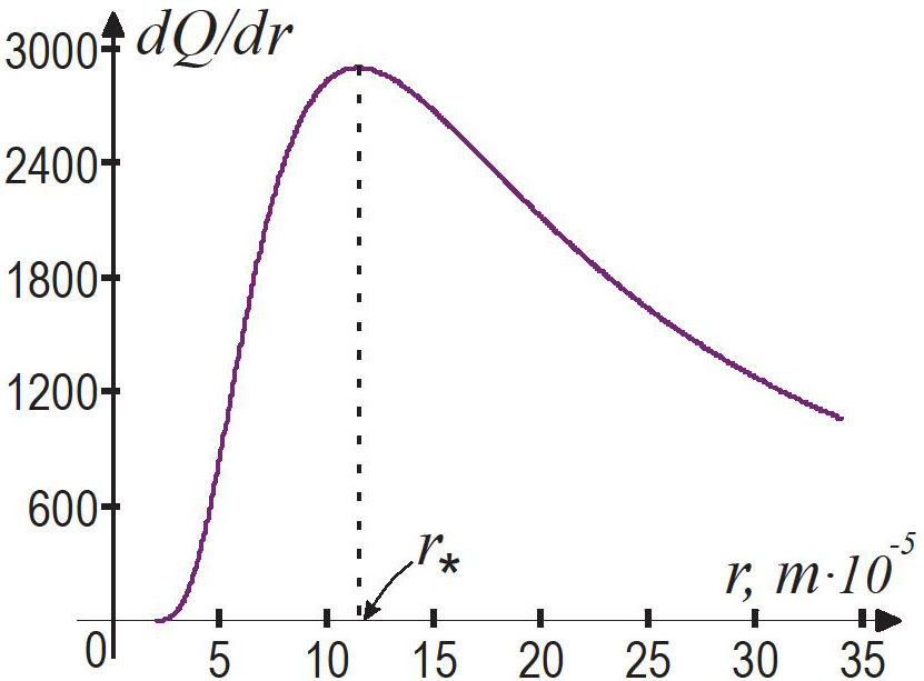 Найдём – радиус, которому соответствует максимальная доля частиц: