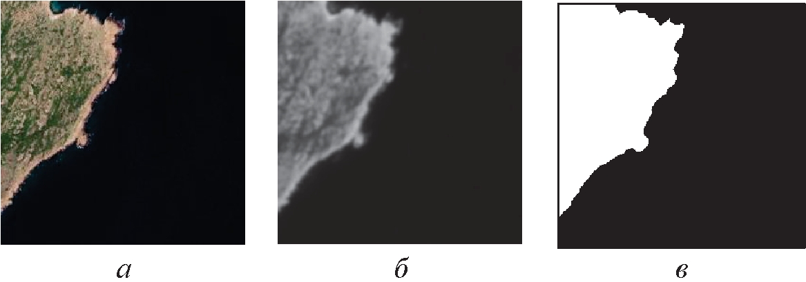 Сравнение полученных изображений с правильными результатами (рис. 7, б) показало, что береговая линия, выделенная предложенным методом, как правило, имеет непрерывные границы и расположение, близкое к найденному ручным методом.