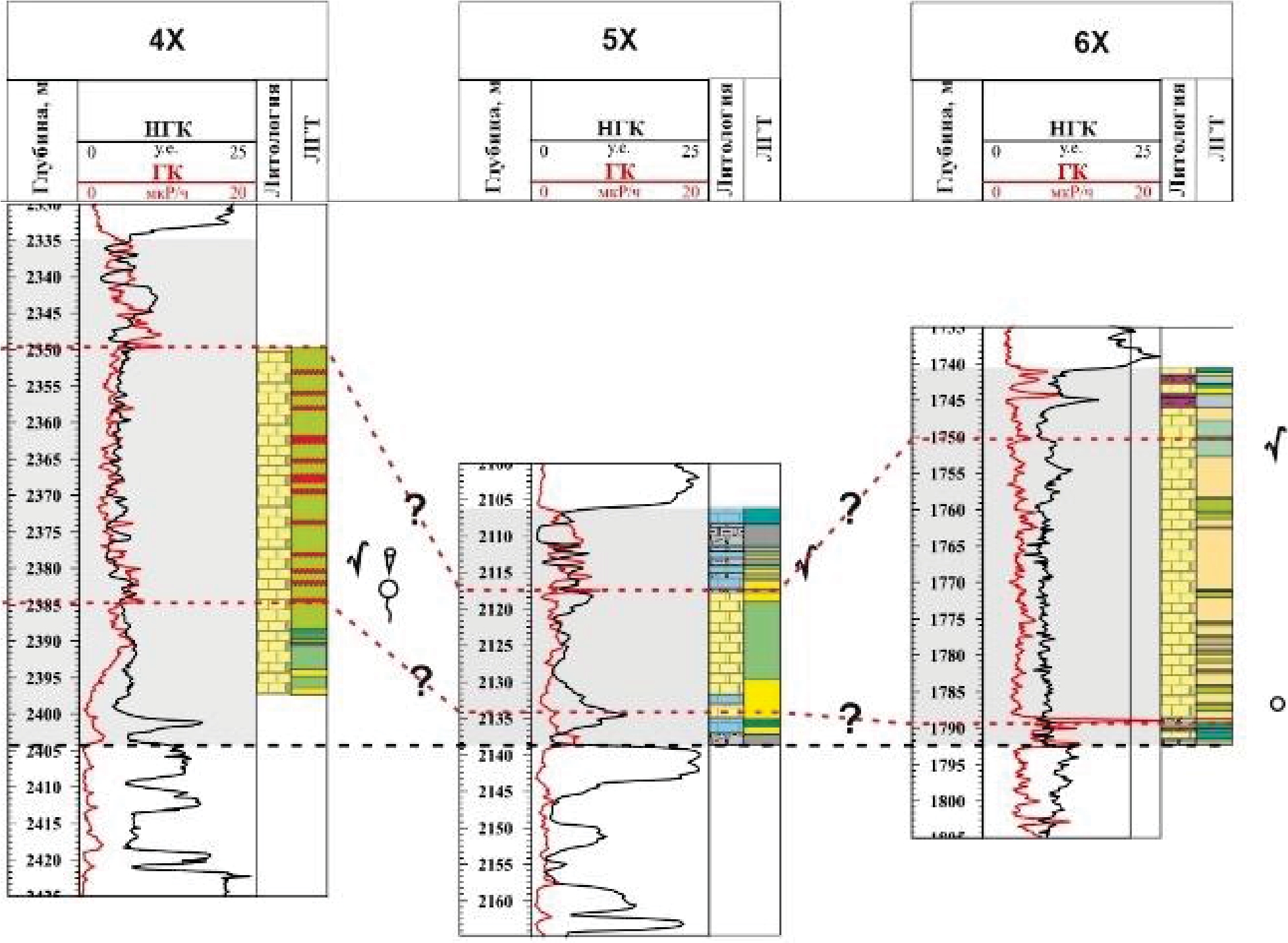 Рис. 3. Схема корреляции изученных скважин (продолжение)