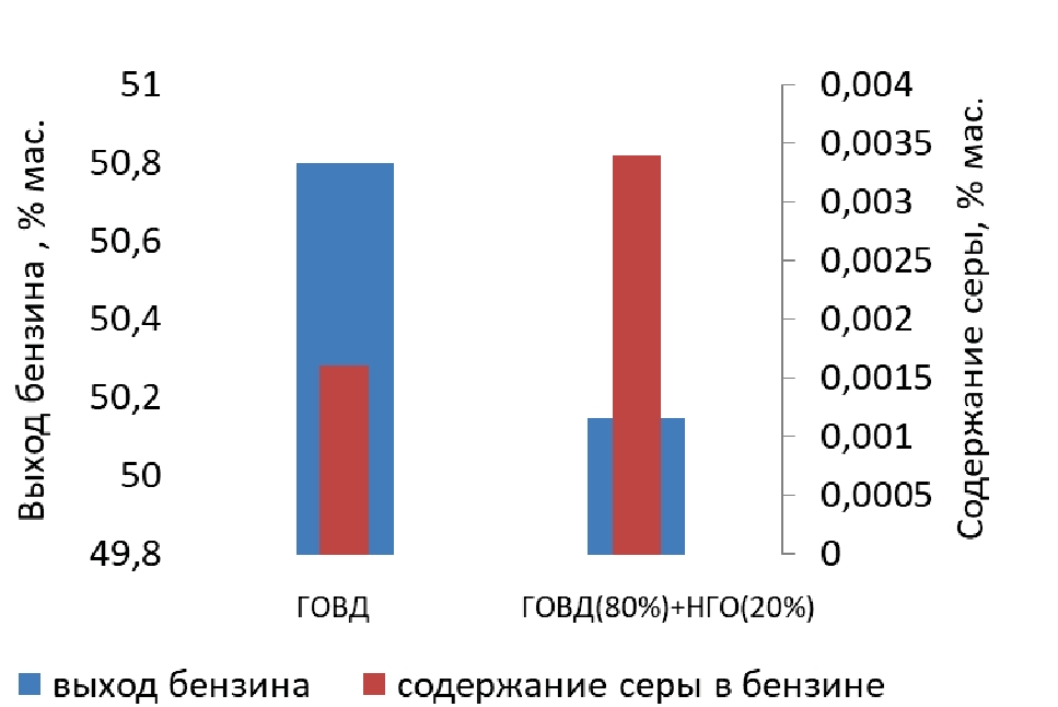 ГВГ – гидроочищенный вакуумный газойль; НГС – негидроочищенное сырье; Смолы 1 – бензольные смолы; Смолы 2 – спиртобензольные смолы/HVG – hydrotreated vacuum gas oil; NGR – non-hydrotreated raw materials; Resins 1 – benzene resin; Resins 2 – alcohol-benzene resins.