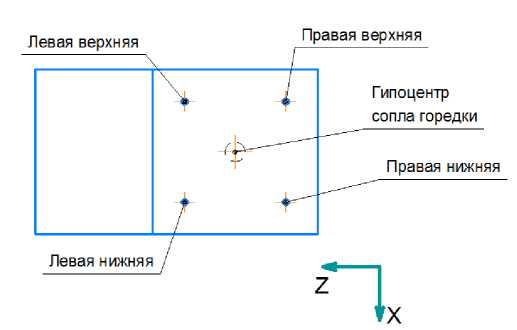 Рис. 10. Схема расположения точек (горизонтальный разрез)