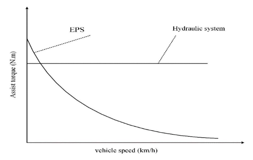 Fig. 1. General characteristics of electric power steering system (EPS) and hydraulic system