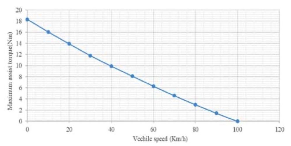 Fig. 12. Dependence of maximum assist torque on the vehicle speed