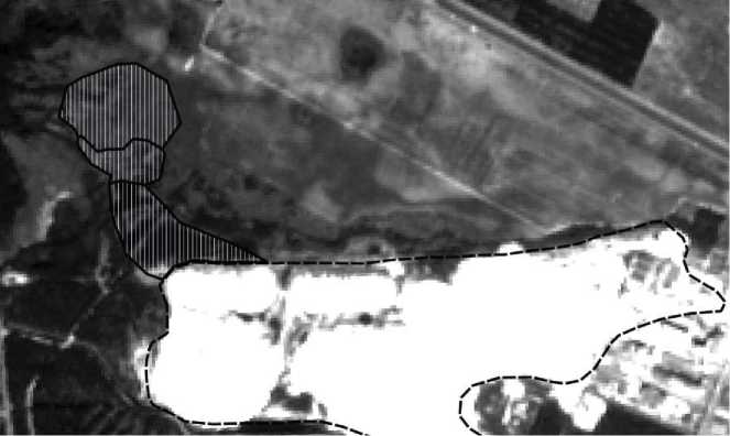 На основе снимков спутников Sentinel-2 рассчитывались вегетационные индексы. Так, например, для выяснения величины NDVI использовались снимки в красном и ближнем инфракрасном диапазонах. На рис. 2 показана схема расположения выделенных модификаций и полигона отходов фосфогипса, на рис. 3, 4 представлены снимки данного участка, соответственно, в красном и ближнем инфракрасном диапазонах. На рис. 5 представлен результат расчета NDVI.