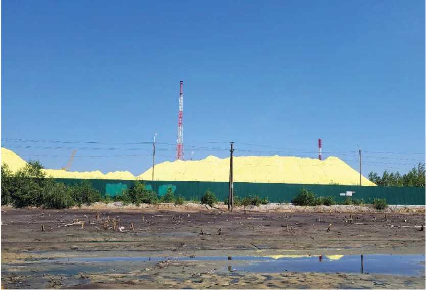 Objects. Sources of pollution during the production of mineral fertilizers (phosphogypsum dumps, sulfur storage).