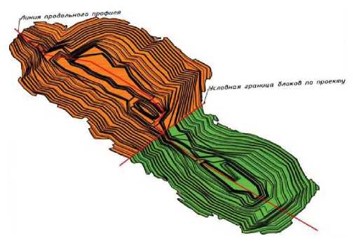 В настоящее время при разработке проектной документации все большее число угольных разрезов старается внедрять технологии отработки с использованием внутреннего отвалообразования. Так, угольные разрезы при разработке проектов на освоение участков недр все чаще делают акцент на ресурсосберегающих технологиях с использованием внутреннего отвалообразования. Например, при разработке проектной документации на отработку и утверждение запасов полезного ископаемого недропользователем в техническом задании указаны требования проектной документации с участием блокового способа разработки карьерного поля (рис. 3, б).