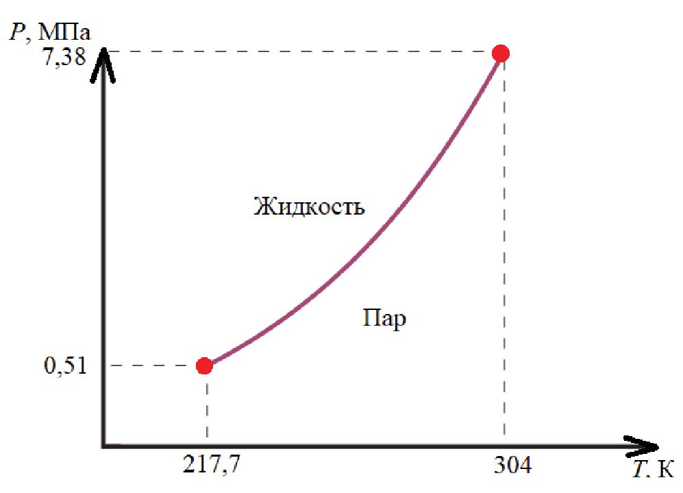 Рис. 1. Фазовая диаграмма пар–жидкость углекислого газа