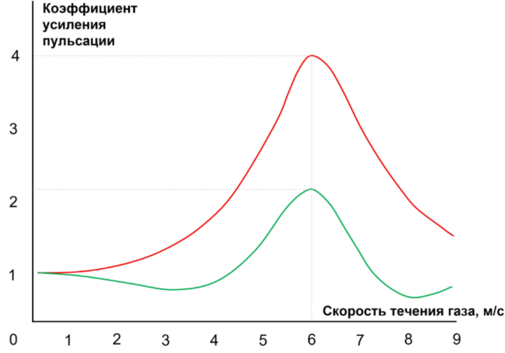 В таких ситуациях происходит образование нестационарных движений с характерной частотой, совпадающей с собственной частотой тупикового ответвления, усиливающей амплитуду пульсации давления.