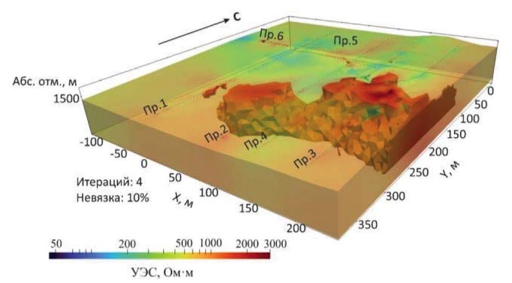 Рис. 2. 3D-инверсия полевых данных