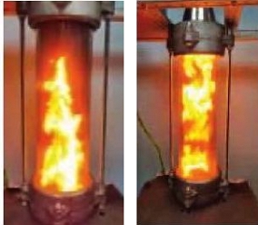 Коэффициент избытка воздуха α в данных условиях, согласно рис. 1, составляет более 1,6. В смеси топлива и окислителя значительный избыток окислителя, горение осуществляется в наиболее неблагоприятном режиме для топливных агрегатов. Это режимы определения концентрационных пределов взрываемости пылеобразующих материалов.
