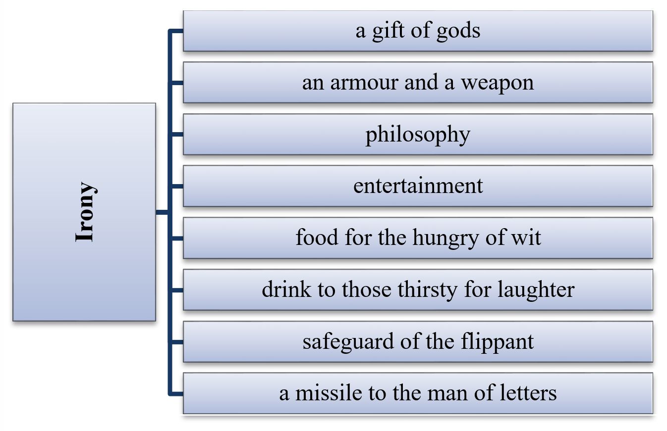 Irony is a gift of the gods, the most subtle of all the modes of speech. It is an armour and a weapon; it is a philosophy and a perpetual entertainment; it is food for the hungry of wit and drink to those thirsting for laughter. How much more elegant is it to slay your foe with the roses of irony than to massacre him with the axes of sarcasm or to belabour him with the bludgeons of invective. And the adept in irony enjoys its use when he alone is aware of his meaning, and he sniggers up his sleeve to see all and sundry, chained to their obtuseness, take him seriously. In a strenuous world it is the only safeguard of the flippant. To the man of letters it is a missile that he can fling in the reader’s face to disprove the pestilent heresy that a man writes books for the subscriber to Mudie’s Library, rather than for himself. Be not deceived gentle reader, no self-respecting writer cares a twopenny damn for you (Maugham, Mrs. Craddock, p. 196).