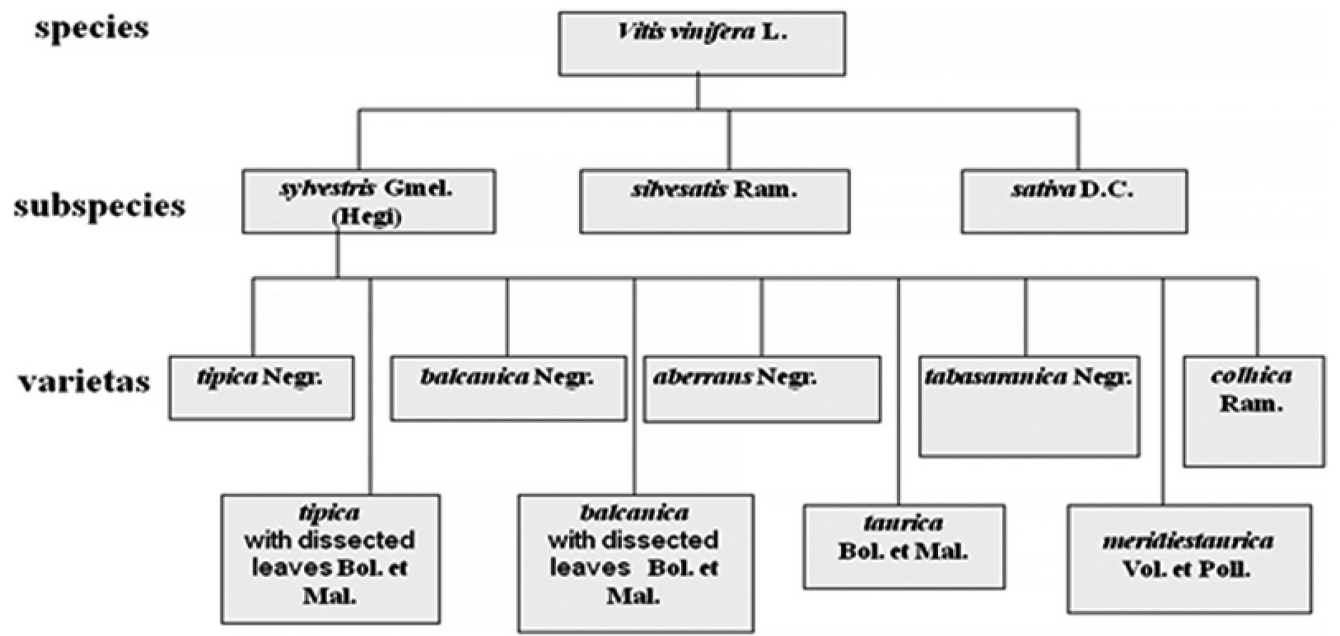В результате исследований в XX и XXI веках нескольких поколений ученых России составлена классификация Vitis vinifera ssp. sylvestris (рис. 2). [3]