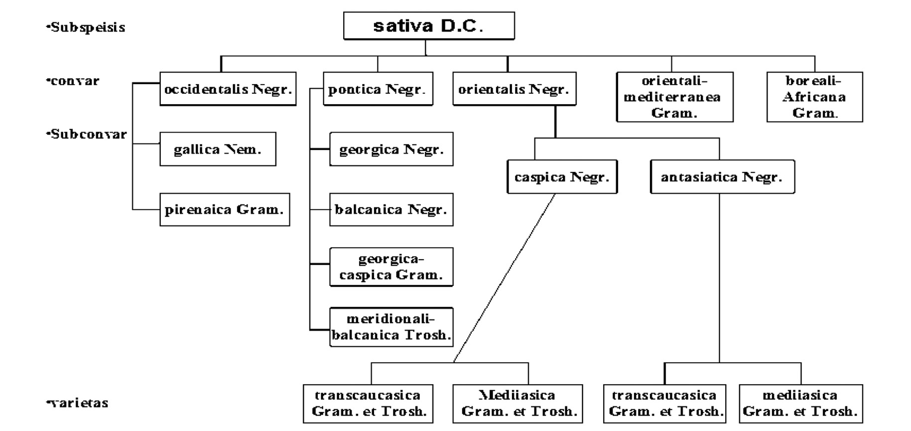 Рис. 3. Классификация Vitis vinifera ssp. sativa D.C. А.М. Негруля, дополненная учеными института «Магарач».
