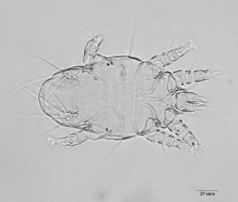 Возбудитель акарапидоза Acarapis woodi с пасеки Алтайского края (фото В.В. Столбовой).