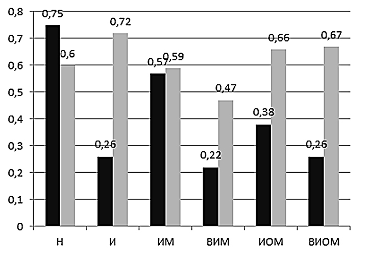 ВИОМ | 0…20 | 1,84±0,16 | 1,81±0,36 |