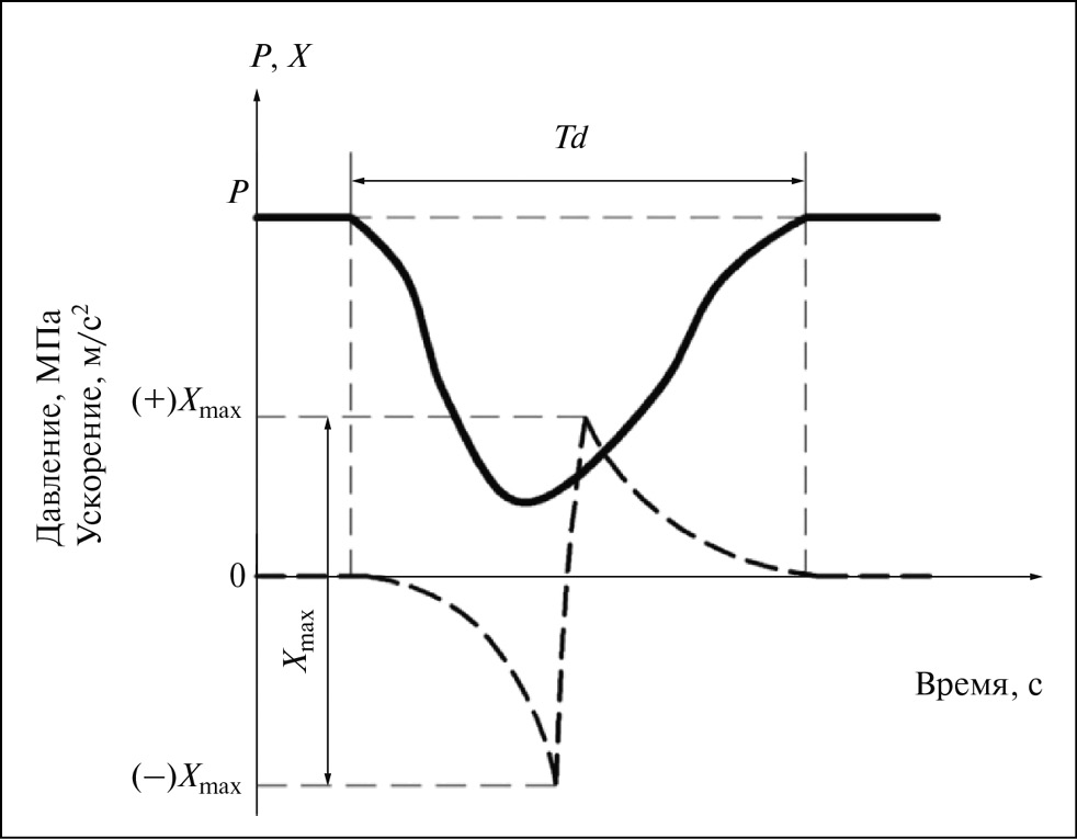 Рис. 3. Переходной процесс изменения давления и ускорения при переключении КП