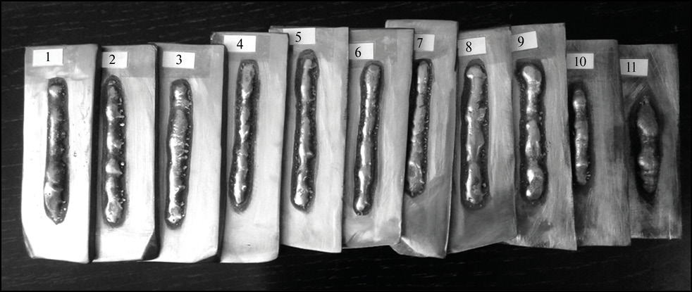 Рис. 2. Швы, полученные лазерной наплавкой при различных режимах