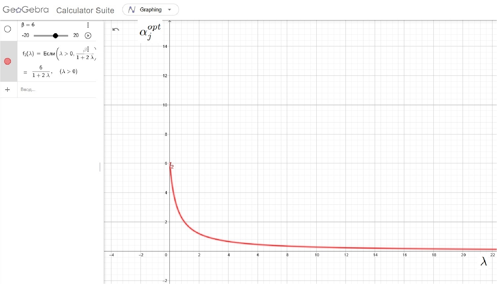 Рис. 3. График зависимости оптимальных координат αj от параметра λ для ℓ2 нормы