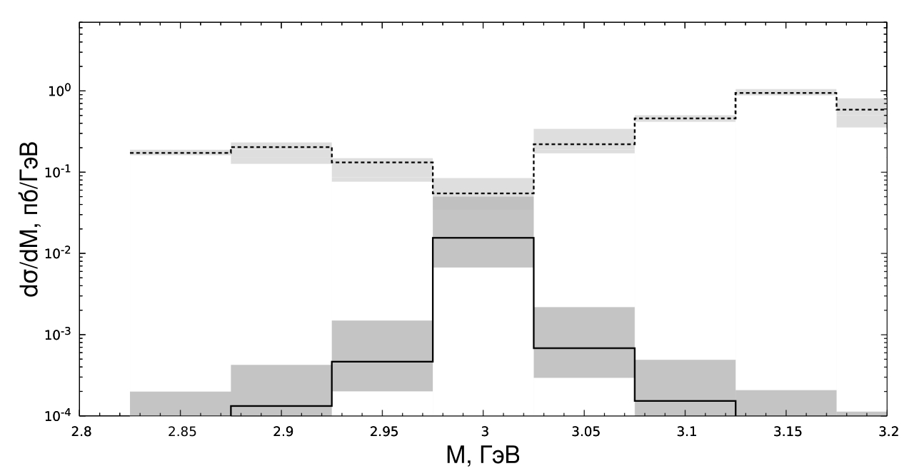 где — инвариантная масса -пары с 4-импульсом , – масса легчайшего D-мезона. Для учета кинематического эффекта, связанного с разницей масс промежуточного состояния и конечного чармония, 4-импульс -пары и -мезона связаны соотношением . Универсальный параметр рассматривается как вероятность превращения -пары с инвариантной массой в -мезон.