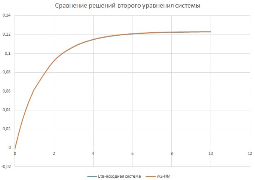 Figure 2: Сравнение решений для второго уравнения задачи до и после построения интегрального многообразия при =0,1