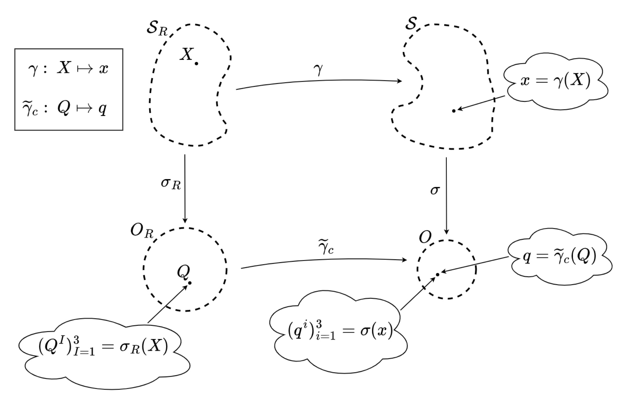 Здесь — открытые множества, элементы которых (упорядоченные тройки) обозначаются соответственно через и . Отображения и являются обратимыми и подчиняющимися требованиям: якобианы