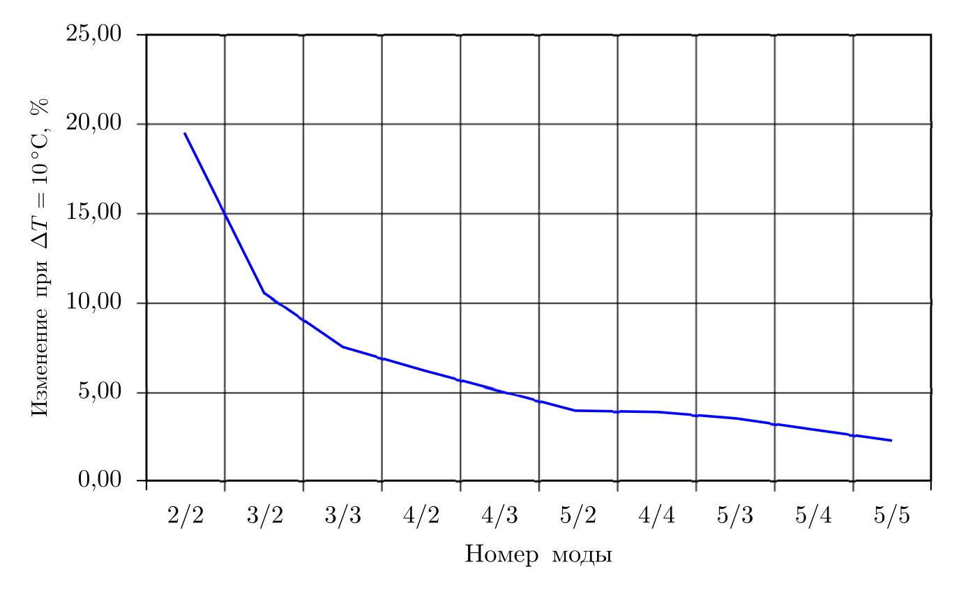 Рис. 2.1. График изменения мод при изменении температуры на 10 °С