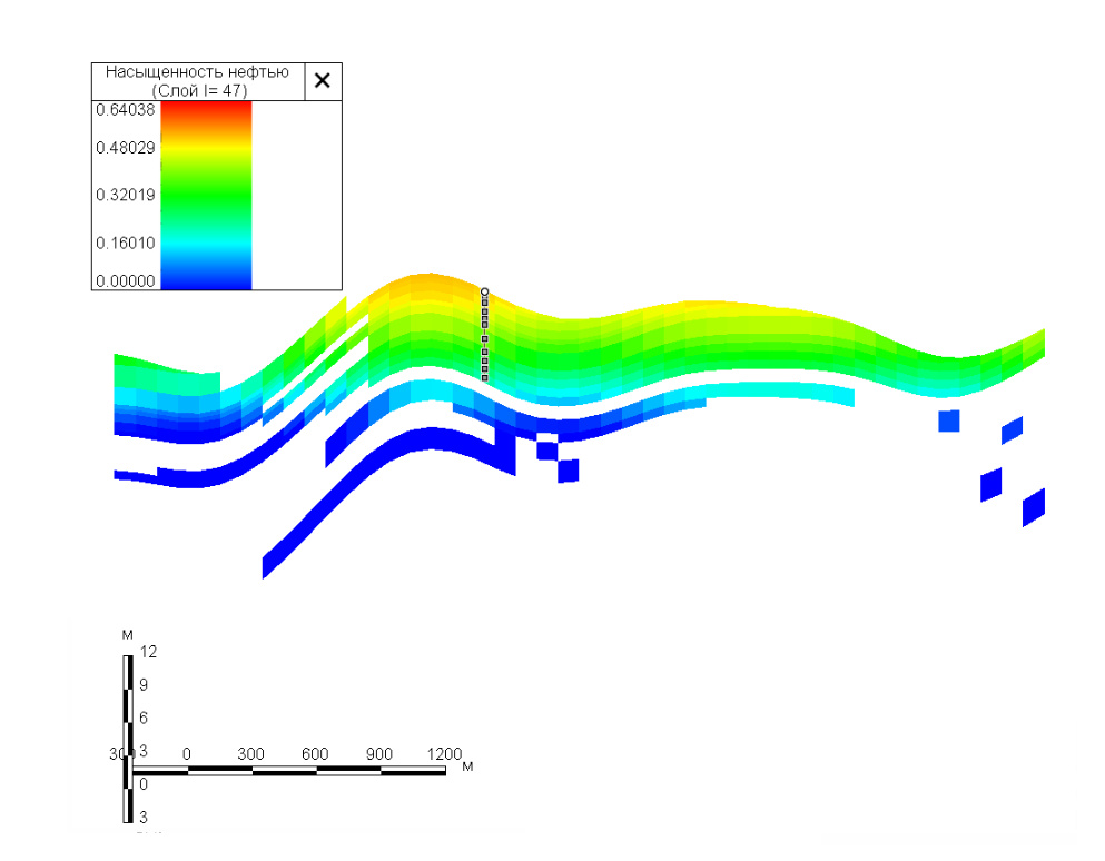 На основе уравнений (1)–-(6), а также вышеуказанных параметров сетки, свойств флюидов и породы, ОФП построена трехфазная, трехкомпонентная гидродинамическая модель в коммерческом симуляторе tNavigator.