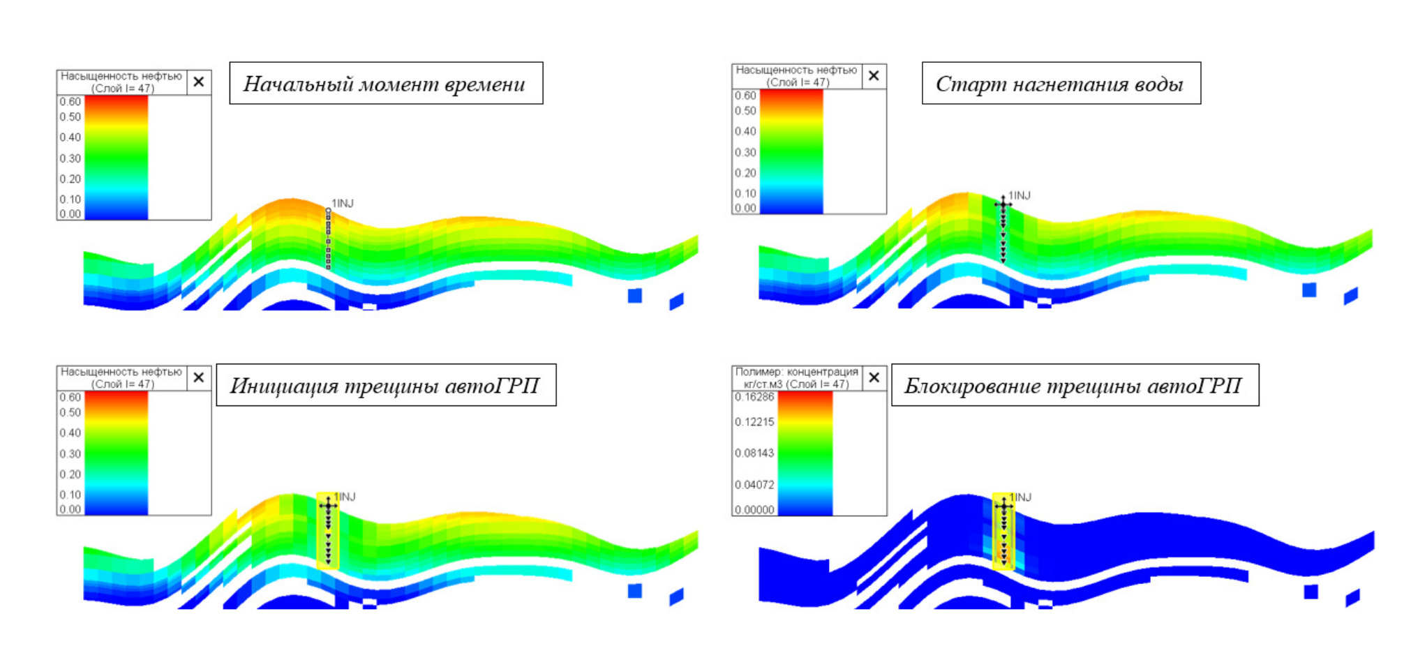 Рис. 8. Этапы проведения гидродинамического моделирования кольматирования трещины автоГРП