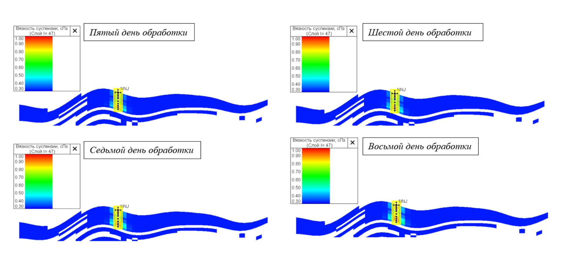 Рис. 9. Распределение закачанной суспензии вдоль трещины автоГРП
