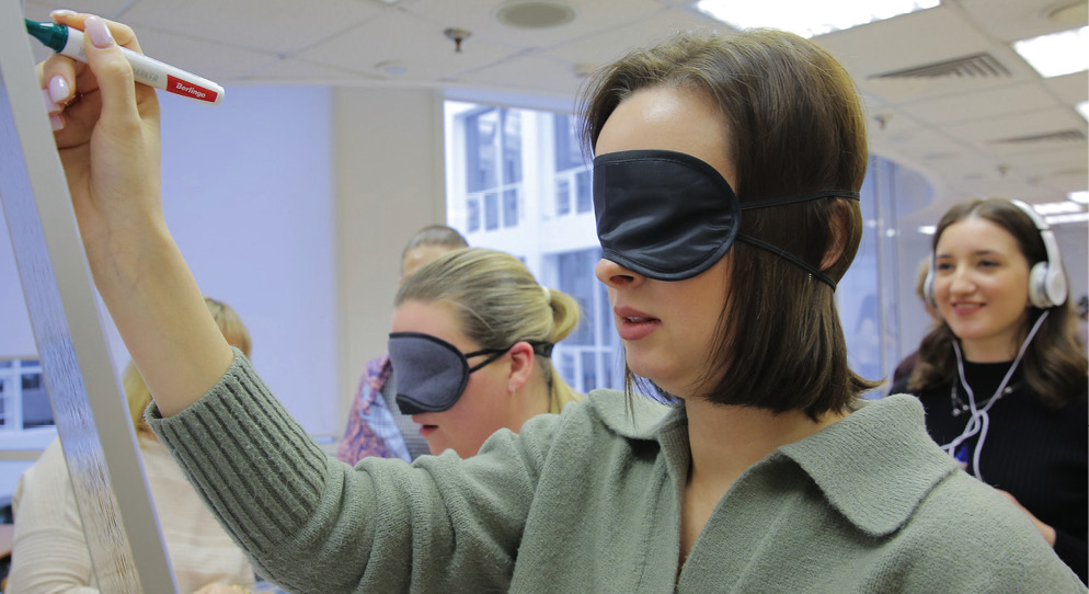 Ключевым инструментом тренинга является игра «Идеальный мир». Часть участников на время «теряет» зрение или слух, часть – усаживается в инвалидные коляски, а часть остается «обыкновенными» людьми. В ходе выполнения заданий на разных локациях обучающиеся неизбежно начинают совершать ошибки, происходит разрыв в коммуникации между разными членами группы. Именно эти разрывы становятся предметом обсуждения по итогам деловой игры. Участие в ней чрезвычайно полезно. Сотруднику, оказывающему услугу, нужно понимать «изнутри» возможности и ограничения тех, с кем он общается, – важно, чтобы он осознавал, как воспринимаются его речь и действия. Он не должен пропускать моменты, когда коммуникация может оборваться или принять деструктивные формы.