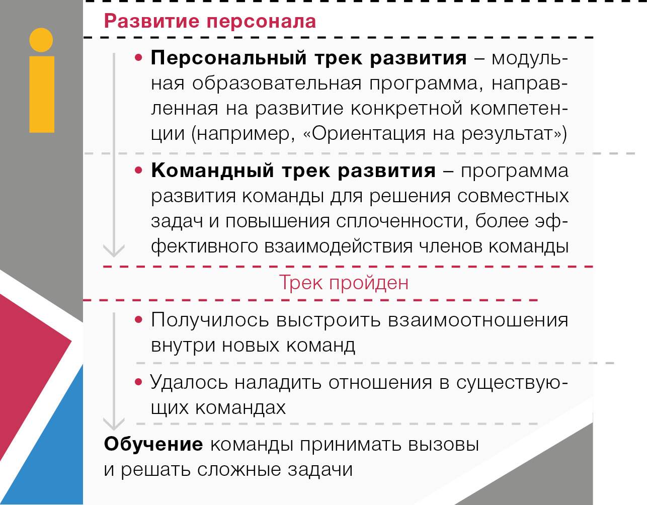 Большой рывок в этом году совершен в блоке развития сотрудников. Здесь мы уже вошли в плановый режим выпуска образовательных треков. Трек – уникальный цифровой продукт, направленный на развитие определенной компетенции – от таких базовых навыков, как грамотный русский язык, до востребованных в современном мире компетенций «Открытость новому» или «Работа в напряженных условиях». Наши треки развития принципиально отличаются от традиционных курсов повышения квалификации тем, что руководитель направляет своего сотрудника на обучение на основании результатов его оценки и совместно с ним планирует траекторию его развития. Процедура оценки выявляет соответствие компетенций специалиста профилю его должности, определяет уровень этих компетенций и необходимые зоны развития. Под каждую компетенцию назначается персональный трек развития, который включает интерактивный курс длительностью от двух недель до трех месяцев. Треки гибко встраиваются в рабочий график, не требуя участия в длительных очных мероприятиях. Чаще всего они подразумевают дистанционный формат занятий продолжительностью 20–30 мин в день. В удобное для себя время и в удобном месте сотрудник может открыть трек, изучить тему дня, тут же позаниматься на тренажерах, пройти тесты и выполнить контрольное задание. Готовую работу он направляет тьютору, чтобы тот оценил, насколько хорошо усвоен материал. В большинстве треков следующий блок не доступен, пока не получено подтверждение от тьютора о том, что предыдущая часть пройдена успешно. Таким образом, не удастся «отсидеться» и получить «корочку» о пройденном треке – нам важно, чтобы участники действительно были мотивированы на совместную работу.