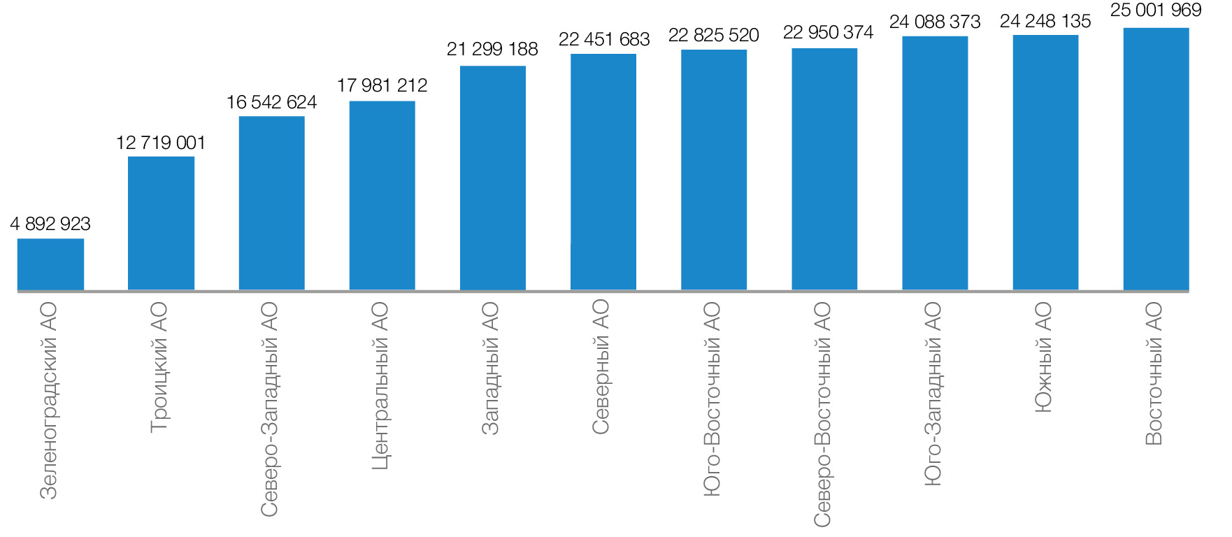 Рис. 4 Суммарные площади жилищного фонда, расположенного в административных округах Москвы (кв. м)
