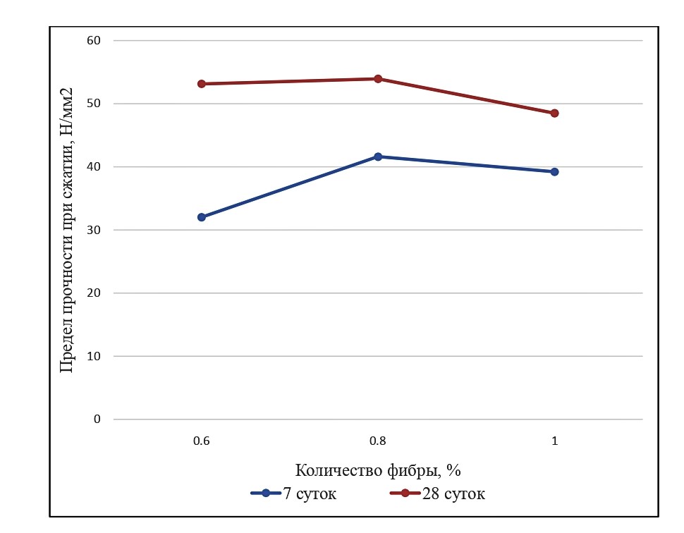 Возраст образцов, сут | Количество фибры, % | Контрольный образец | ||