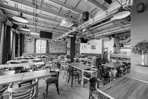 Интерьер Винзавода минималистичен (рис. 6). Для отделки используются металл, дерево и кирпич. В качестве поверхностей для картин устроены белые перегородки. Ритмичную композицию создают осветительные приборы [12].